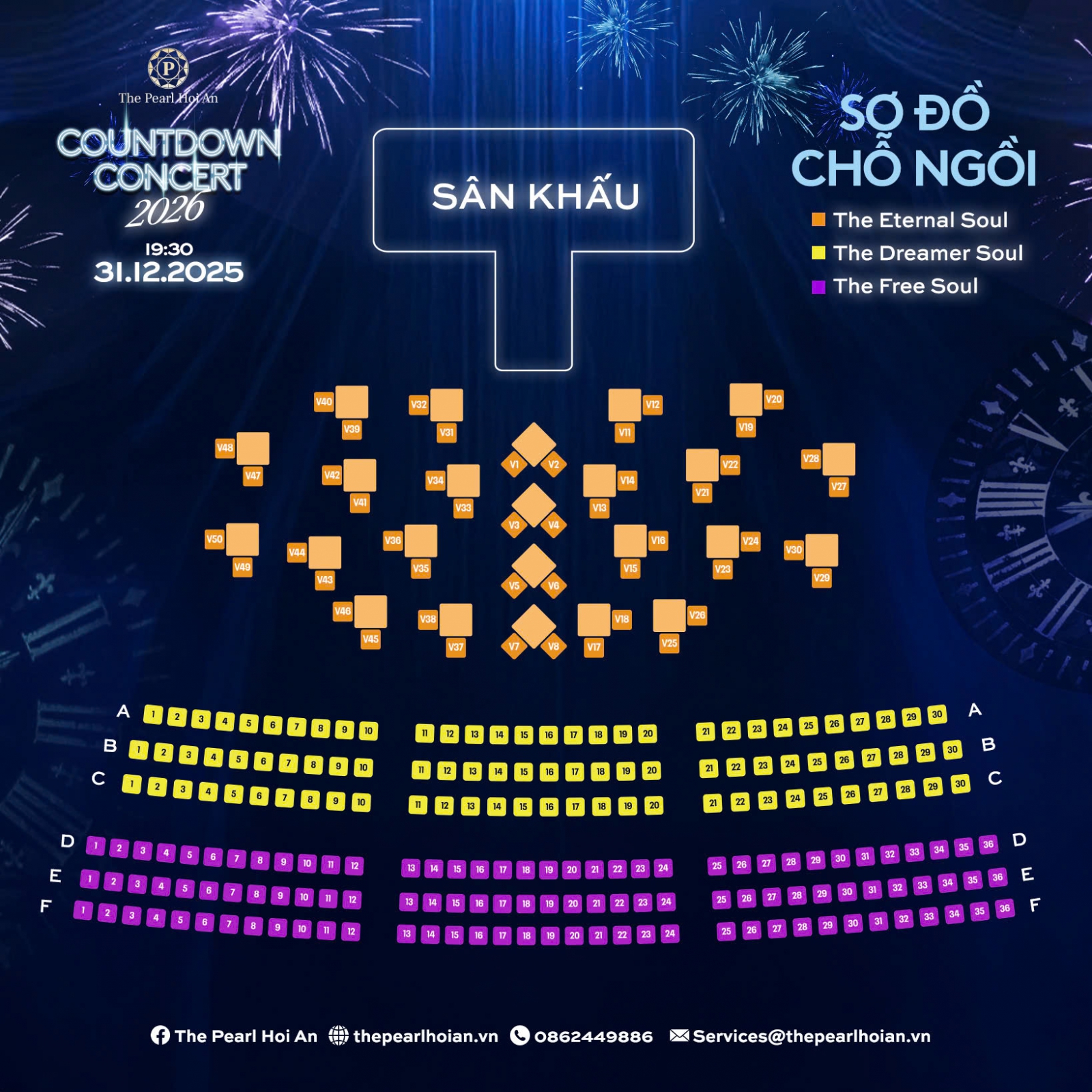 Để mang đến những trải nghiệm trọn vẹn nhất, The Pearl Hoi An giới thiệu ba hạng vé đặc biệt cho đêm nhạc “THE GENTLEMEN – Countdown Concert 2026”. Mỗi hạng vé là một cung bậc cảm xúc, một cách tận hưởng âm nhạc riêng dành cho những tâm hồn yêu cái đẹp.